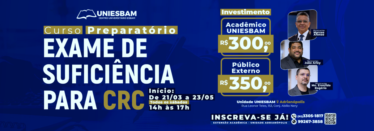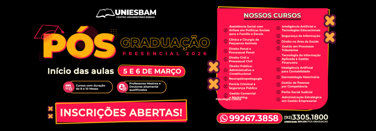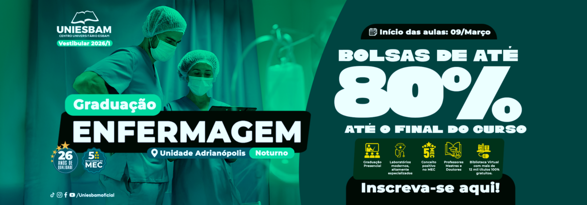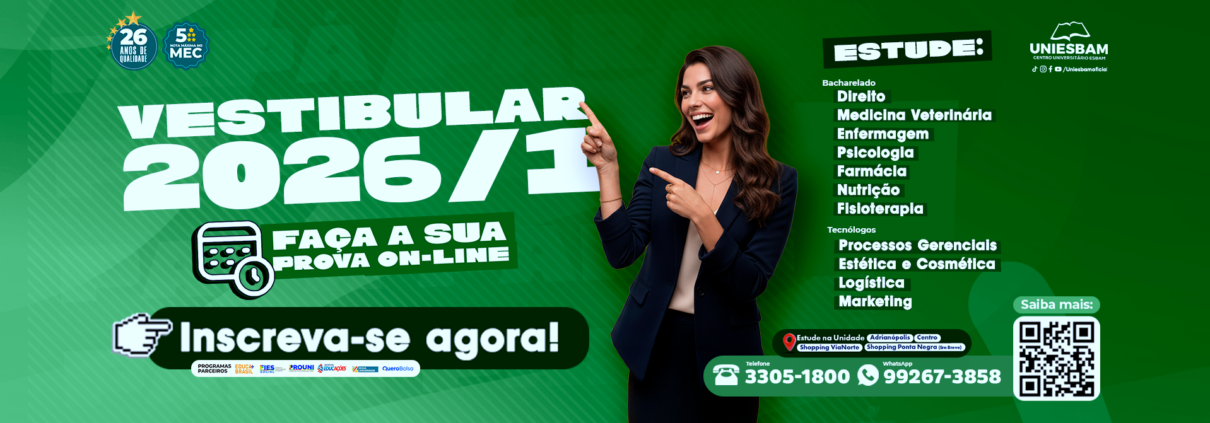 Há 25 anos transformando vidas por meio da educação, a antiga Escola Superior Batista do Amazonas agora é o UNIESBAM – Centro Universitário ESBAM, reconhecido pela excelência na formação de profissionais capacitados e comprometidos com o futuro.