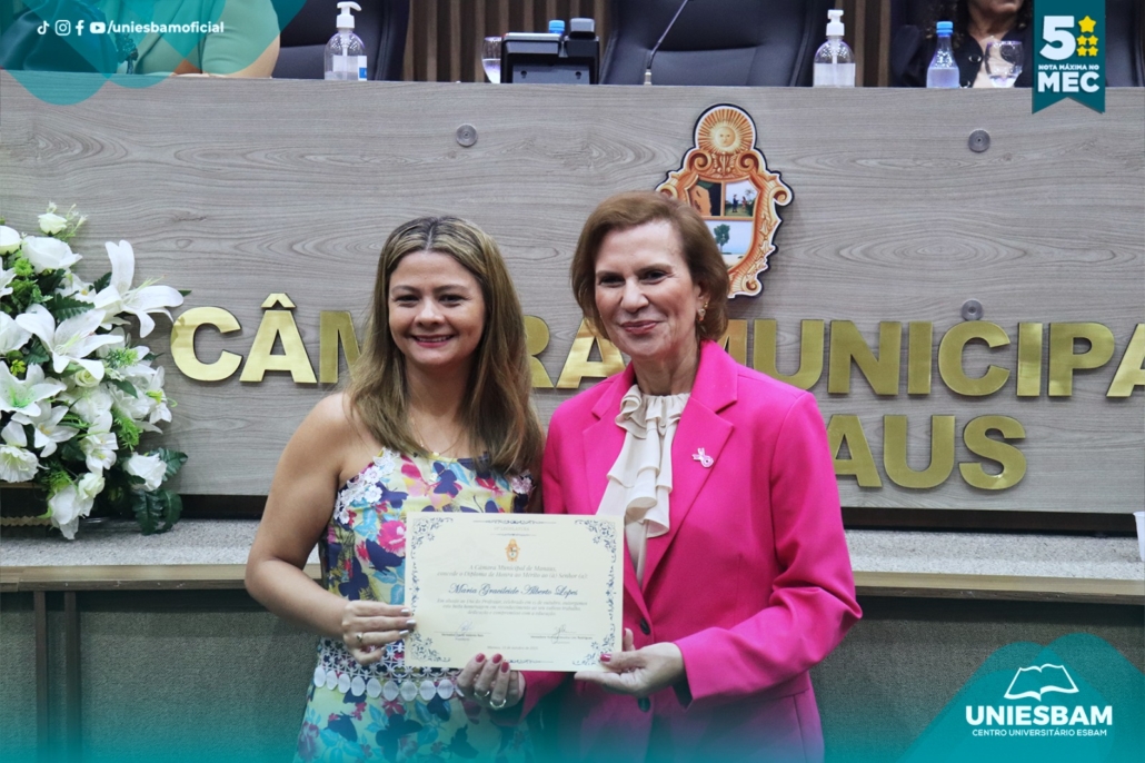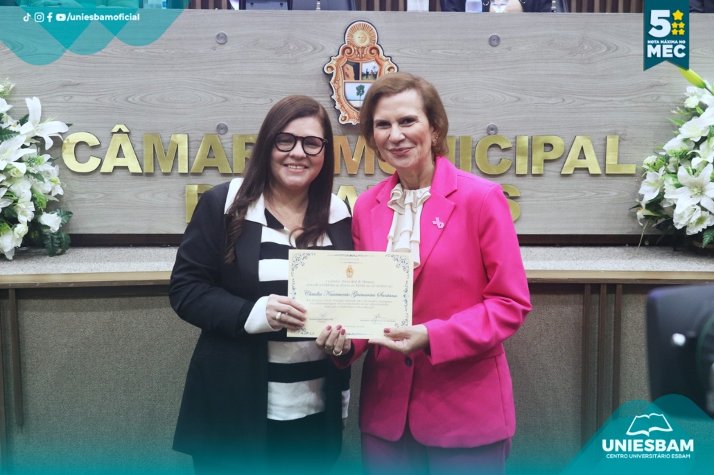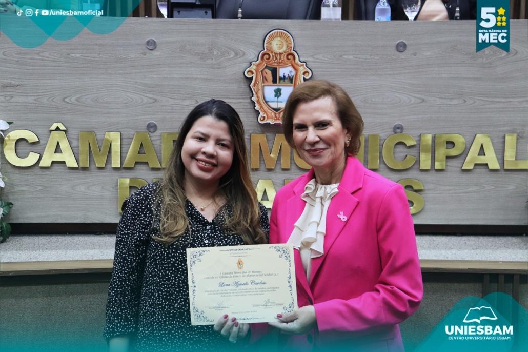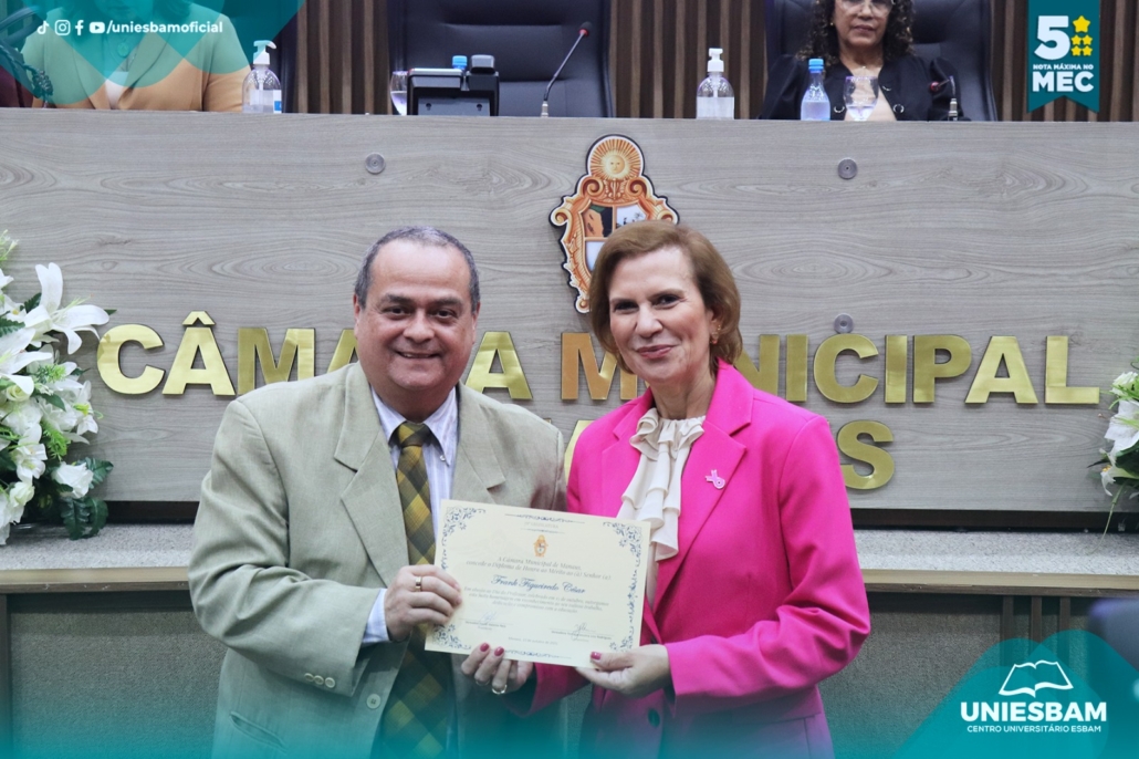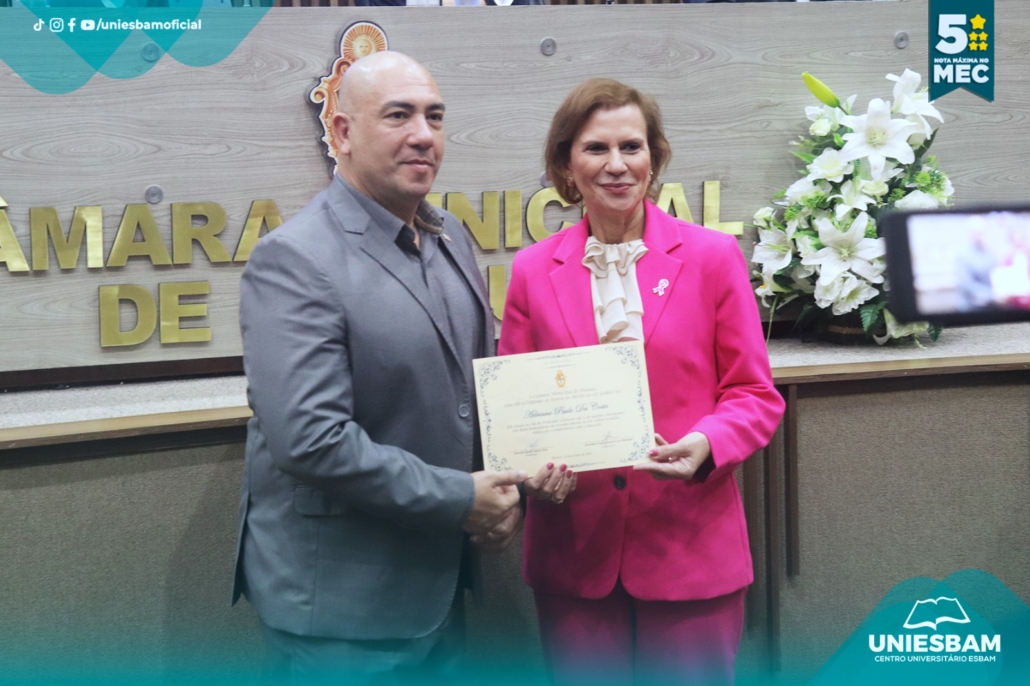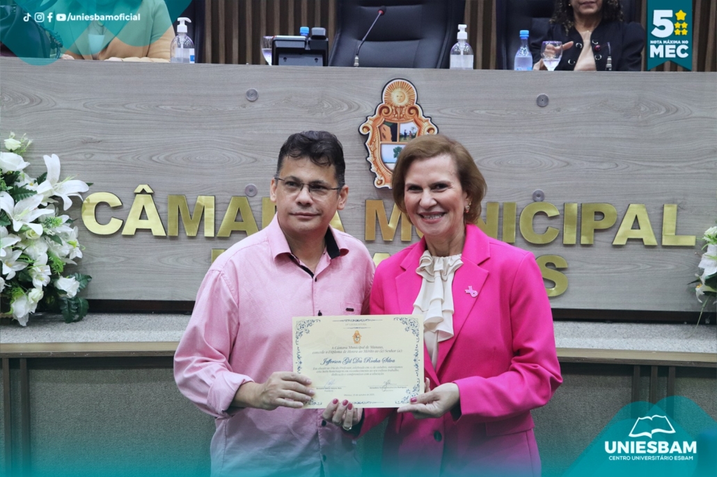Na última quarta-feira, 15/10, o Centro Universitário UNIESBAM foi homenageado na Câmara Municipal de Manaus em celebração ao Dia do Professor, uma data especial para reconhecer o compromisso, a dedicação e o papel transformador dos educadores em nossa sociedade.