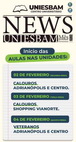 Cada edição do NewsUNIESBAM traz uma visão panorâmica dos eventos, projetos, conquistas e pautas relevantes que movimentam a vida universitária, fortalecendo o sentimento de pertencimento entre estudantes, docentes, colaboradores e toda a comunidade acadêmica. Além disso, o jornal atua como um canal de comunicação transparente e acessível, estimulando o engajamento, a participação e o diálogo entre os membros da instituição.
